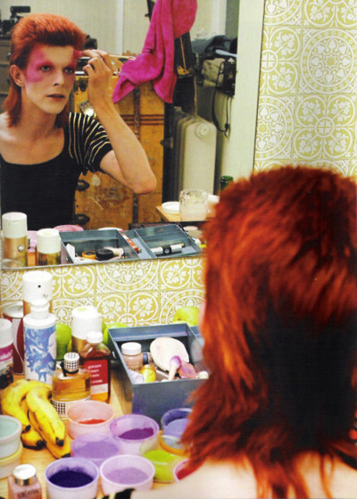 These pictures were taken by Mick Rock during David Bowie’s British tour in 1973. On his busy dressing table you can see a Dior houndstooth bottle.