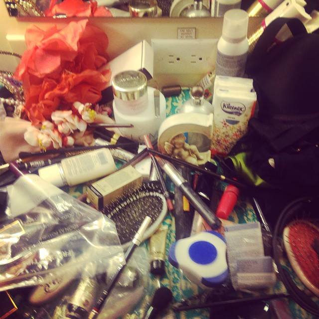 courtneylove_dressingtable_bornunicornCourtney Love recently shared a picture of how her dressing table looked like during her Australian tour. “Fucking mess”, she commented, and the table is actually a mess.