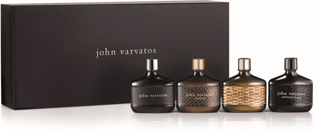 The tiny bottles are from the John Varvatos fragrance collection coffret: they are Classic, Vintage, Artisan and Artisan Black.