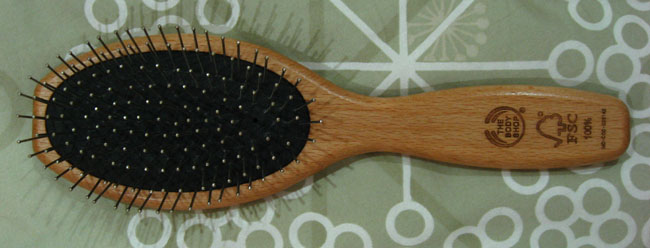 A bottle of CK Be, vitamin E face mist and a cushion pin large hairbrush by The Body Shop, Kryolan cake make-up and The Body Shop coconut oil hair shine can be seen on the dressing table of Edward Petherbridge.