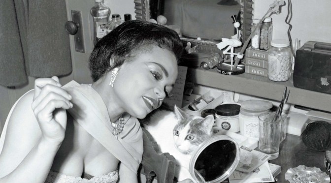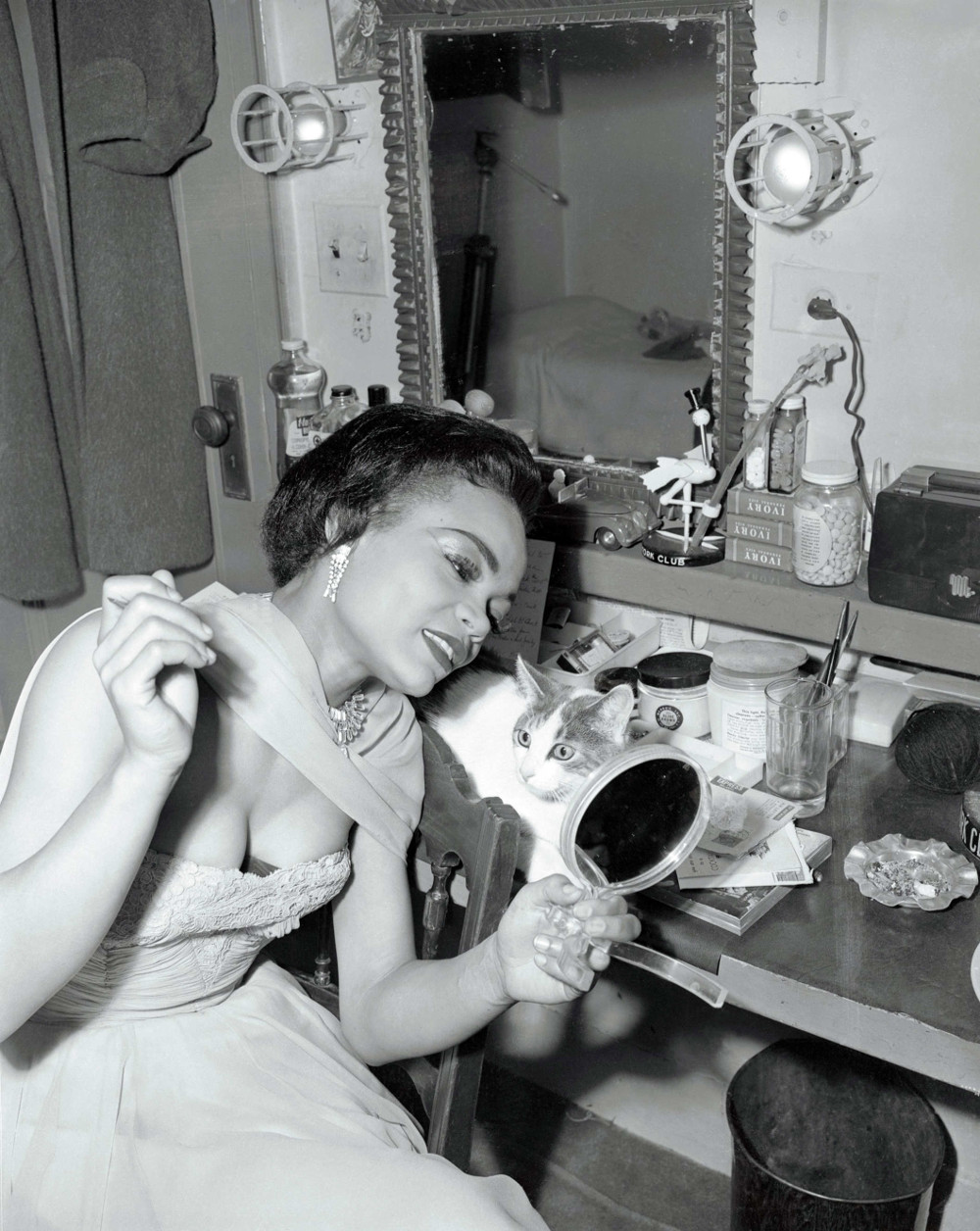 The singer and actress Eartha Kitt started her career in the early 1950s, when she performed in New Faces of 1952, a musical revue with songs and comedy skits at the Royale Theatre on Broadway, New York. In the picture above, taken on February 1953, Kitt was portrayed with her cat Jinx.