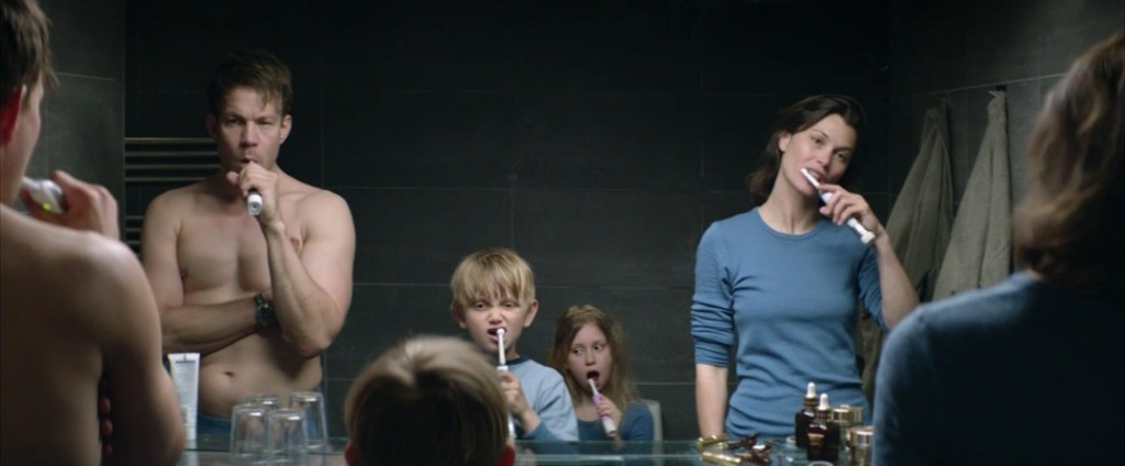 There are two products by Estee Lauder in the bathroom where Tomas (Johannes Kuhnke), Ebba (Lisa Loven Kongsli) and their children are brushing their teeth.