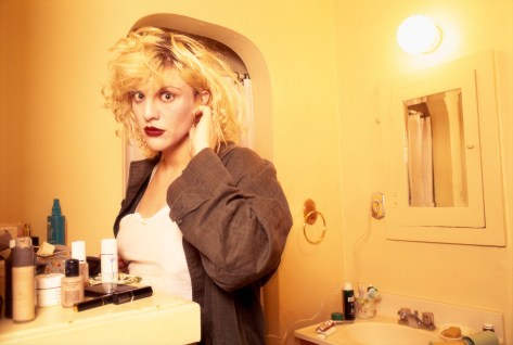 The passion of Courtney Love for cosmetics and perfumes has been documented since the beginning of her career [1]. In 1992 Alan Levenson took this picture in the bathroom of a Los Angeles apartment [2] she had rented with Kurt Cobain. Let’s start with the products on the washbasin.