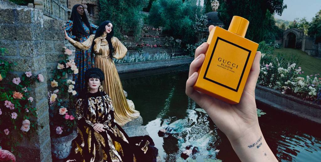 The British singer/songwriter Florence Welch recently shot a fascinating commercial for the Gucci Bloom advertising campaign. In a backstage picture we can see a bottle of Officina Profumo-Farmaceutica Santa Maria Novella toning water on a table near the artist.