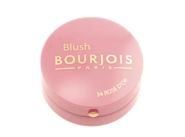 The small pale pink pot in front of the perfume is a Bourjois blush.