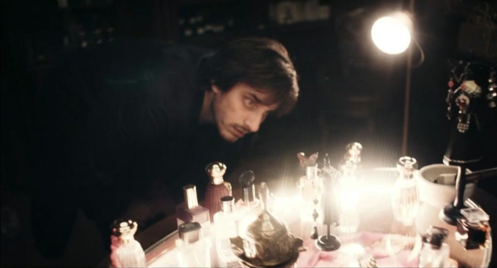 The male protagonist of the film (Luca Marinelli) goes to a perfume shop looking for a fragrance that reminds him of his past. He’s very upset, desperate to find it but he doesn’t know its name or if it actually exists.