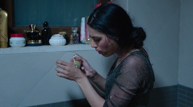 Somayeh (Alice Rahimi) tries a skin cream she finds in the bathroom of one of her clients.