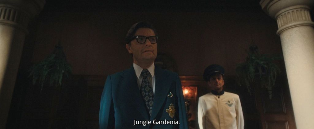 When the country club manager (James Urbaniak) enters the apartment, he immediately detects a very precise fragrance, which he mentions: Tuvaché Jungle Gardenia.