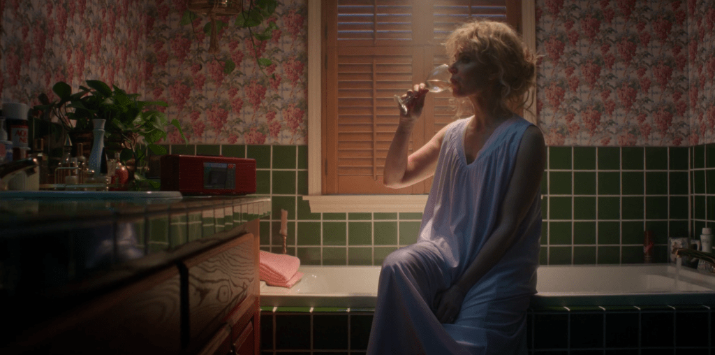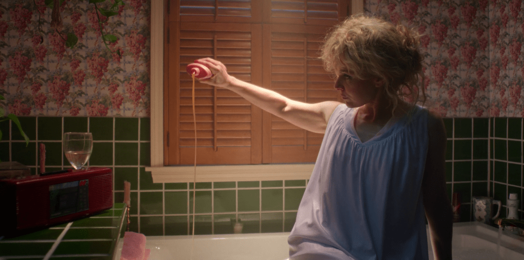 In a season filled with chaos and violence, Karen Wheeler (Cara Buono) is the only character who gives us a short moment of relax — nice music (ABBA’s Fernando is playing on the small stereo she keeps on the bathroom counter), a glass of white wine and a bubble bath.