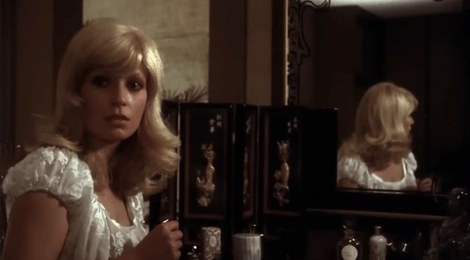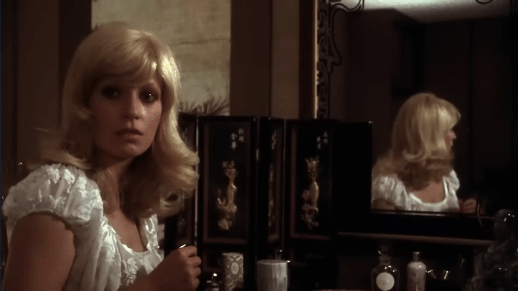 Christina Larsson (Christiane Krüger) is watching the news on TV while sitting in front of her vanity. Two objects on it have captured my attention.