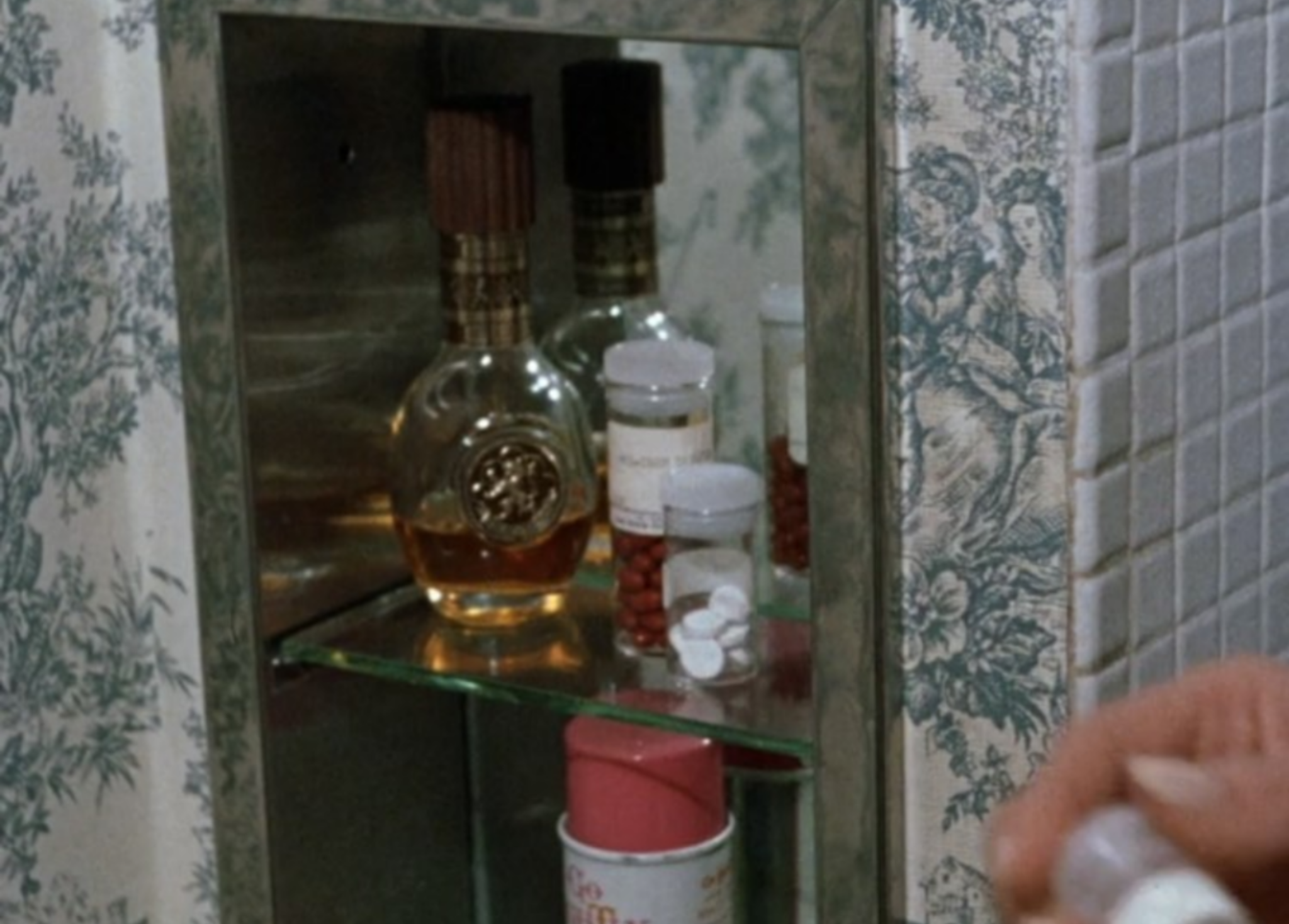 There’s a bottle of Speidel Bravura cologne in this bathroom cabinet. This musky fragrance was launched in 1967.