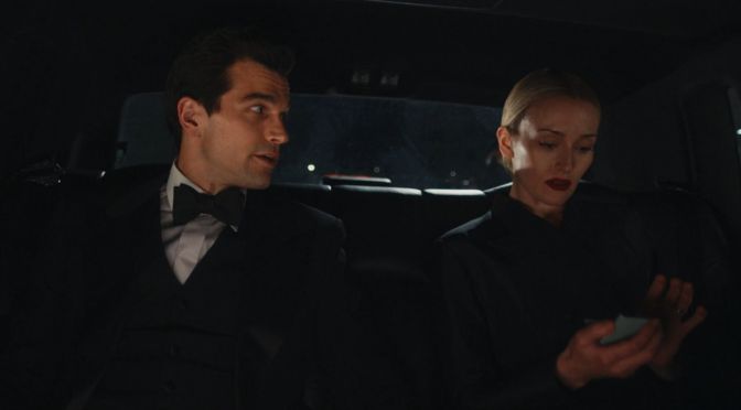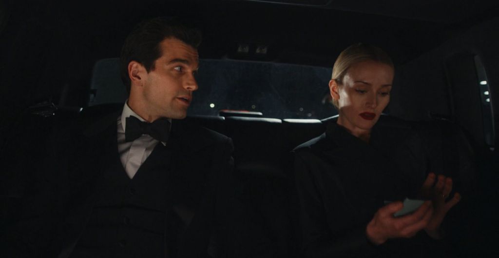 While John (Paul Anthony Kelly) and Carolyn (Sarah Pidgeon) are driving to an event, we can see she’s holding an aqua green compact.