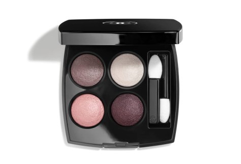 There are also several black boxes, possibly containing compacts. Moreover, just below the oval mirror on the right there’s a Les 4 Ombres eyeshadow palette.