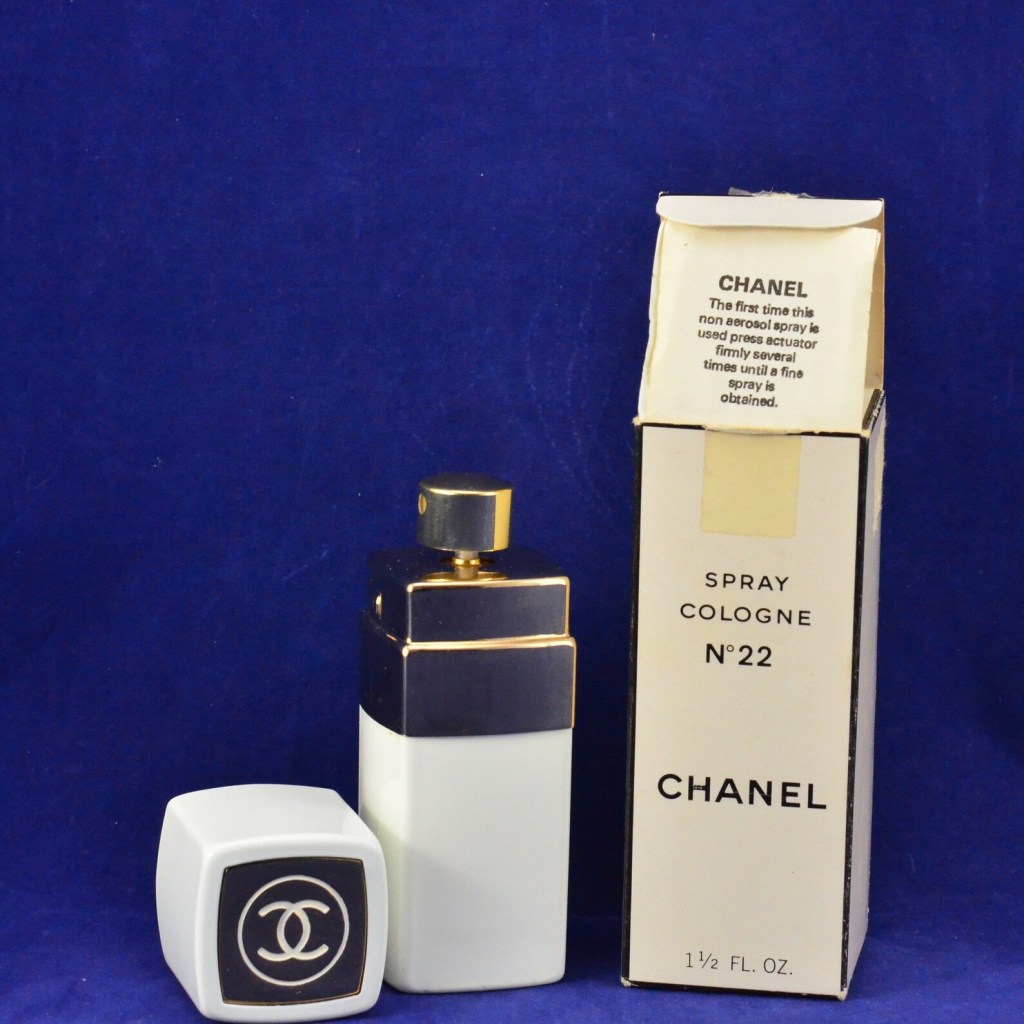 The atomisers in front of the pump bottles contained No. 22 (white atomiser) and No. 19 (steel grey atomiser). No. 22, a white floral fragrance by Ernest Beaux, was originally launched in 1922; on the other hand, No. 19, a green floral fragrance by Henri Robert, was launched in 1970.