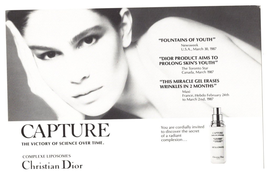 Behind Debbie there’s a Chanel skincare counter. It’s impossible to tell what those glass bottles contained, but I’m pretty sure one of them was Lotion Douce (shown above in a 1978 advert).