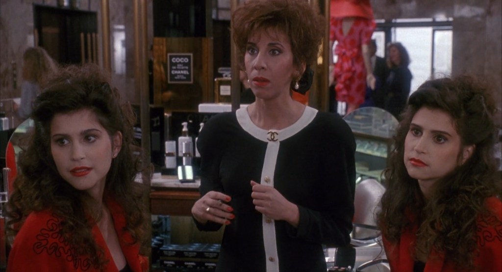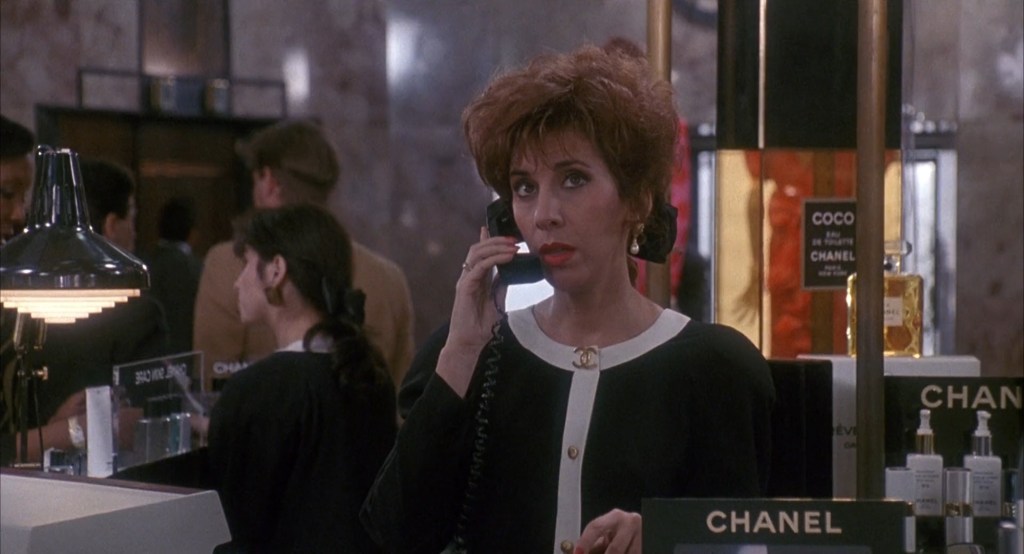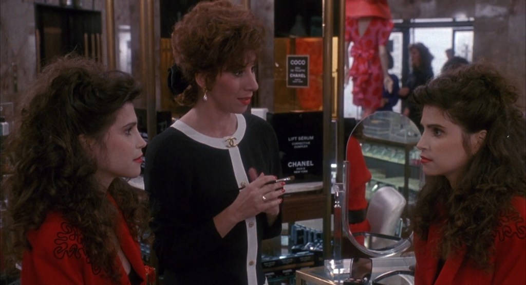 Debbie Lipton (Anne De Salvo) works at the Chanel beauty counter at I. Magnin luxury department store in Los Angeles. She may be loud and very chatty with her former high school classmate Spencer (one of the protagonists), but she looks very classy and professional at her workplace.