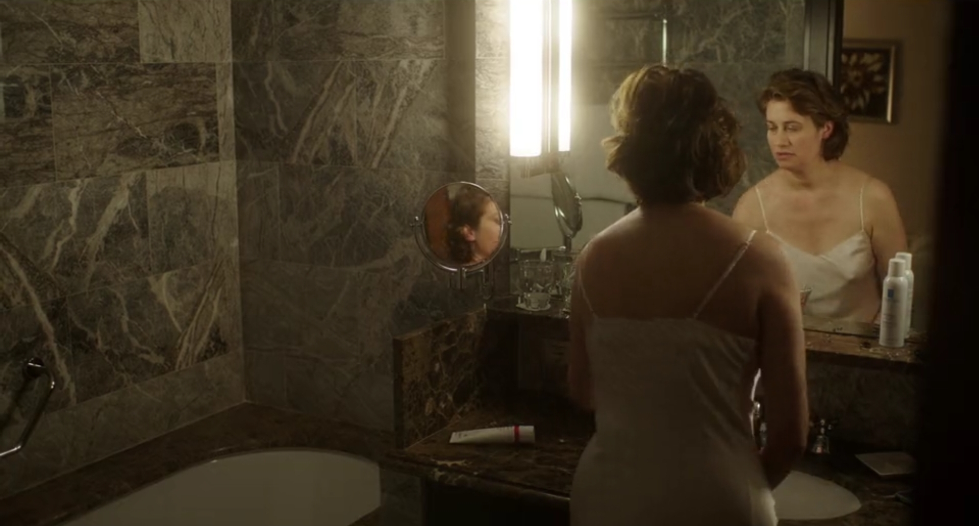 There’s a tube of Dr. Hauschka body cream in Francesca’s bathroom. The tube with the red band contains creams in different scents –