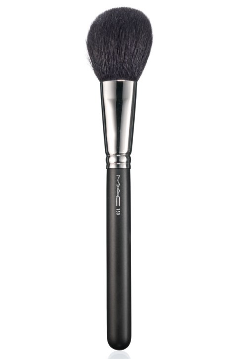 The MAC brush she’s using to apply blush is possibly the 150S.