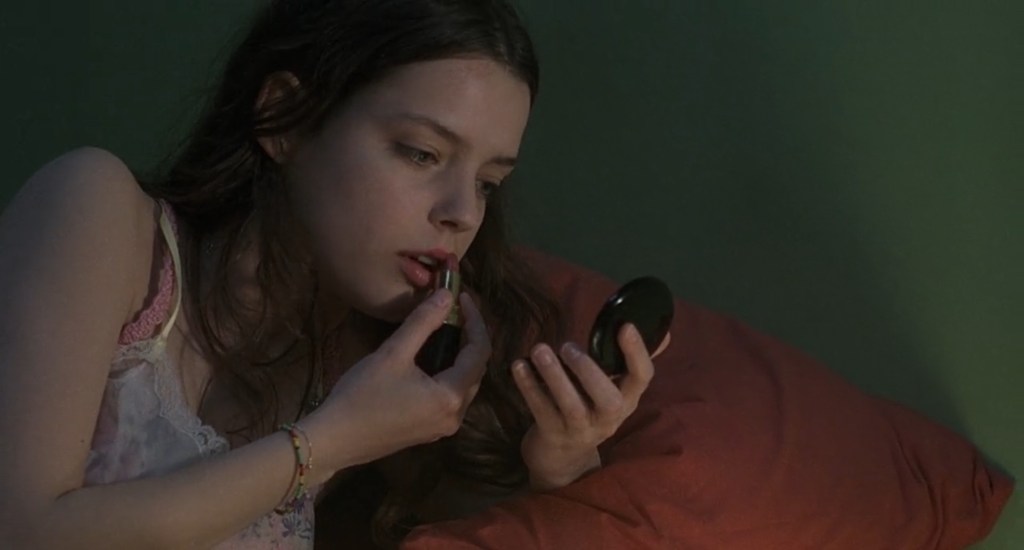 Mara (Manuela Arcuri) is holding a blue compact which, to my 1990s mind, screams Christian Dior.