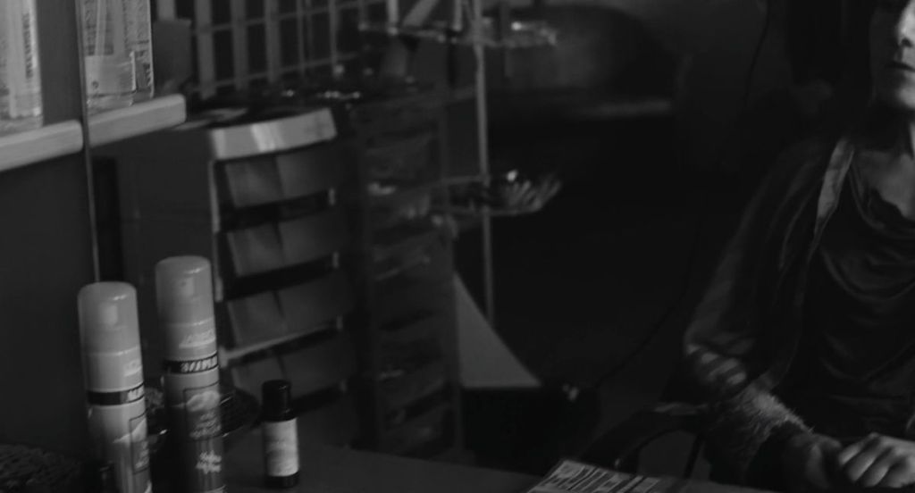 There are several hair styling products by Paul Mitchell at the hair salon where the protagonist gets his hair dyed.