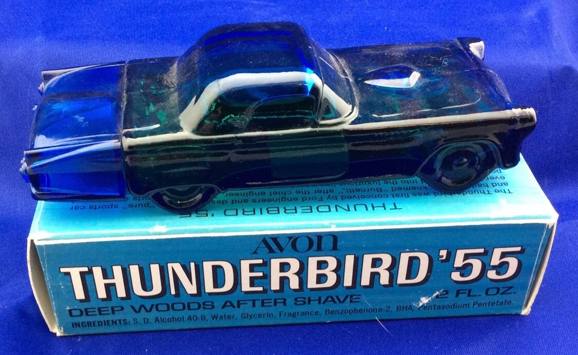 Royal Crown hair dressing, Pinaud Clubman talc, Avon Stop ‘N Go after-shave, Corvette Stingray ’65 bottle containing Spicy after-shave and Thunderbird ’55 bottle containing Deep Woods after-shave in Bert Fischer’s barber shop.