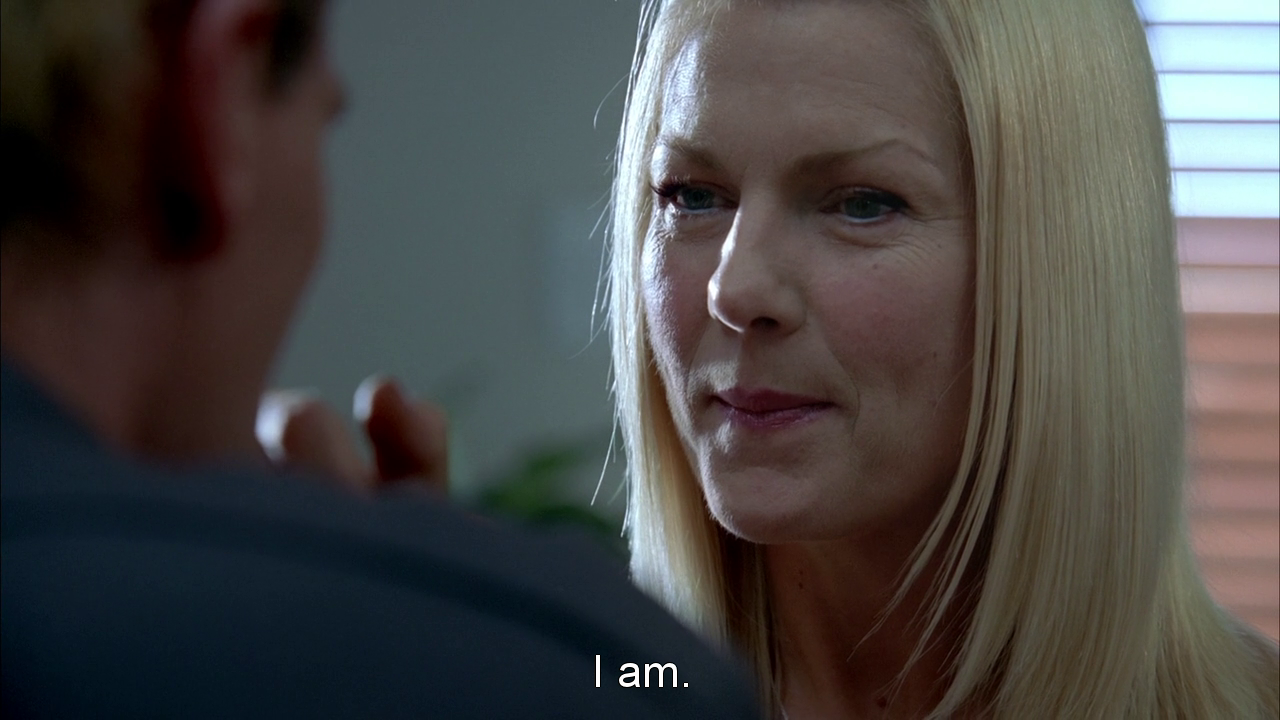 The protagonists of this scene are Maggie (Janine Turner) and Joanne (Cathryn De Prume). They have one thing in common – Rick Pederson, Maggie’s ex-boyfriend who cheated on her several times. Joanne travels to Cicely (Alaska) to see the unveiling of a statue commemorating Rick’s death. Later, they meet at a bar and have the following conversation.