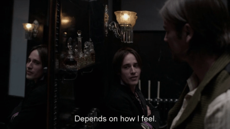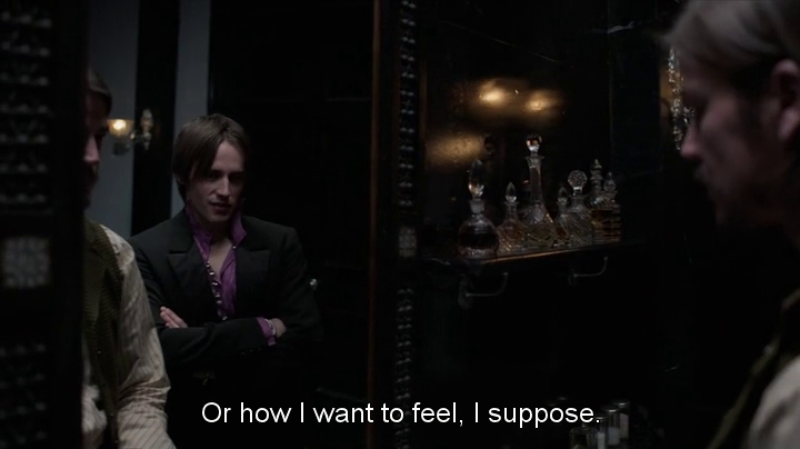 Dr. Hannibal Lecter (Mads Mikkelsen) recognizes Will Graham (Hugh Dancy) from his aftershave.