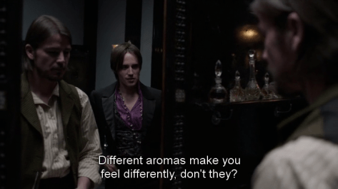 Even if Hannibal doesn’t mention it, we know from S01 he’s referring to Old Spice, the after-shave lotion with “a ship on the bottle” that Will always receives as a gift at Christmas.