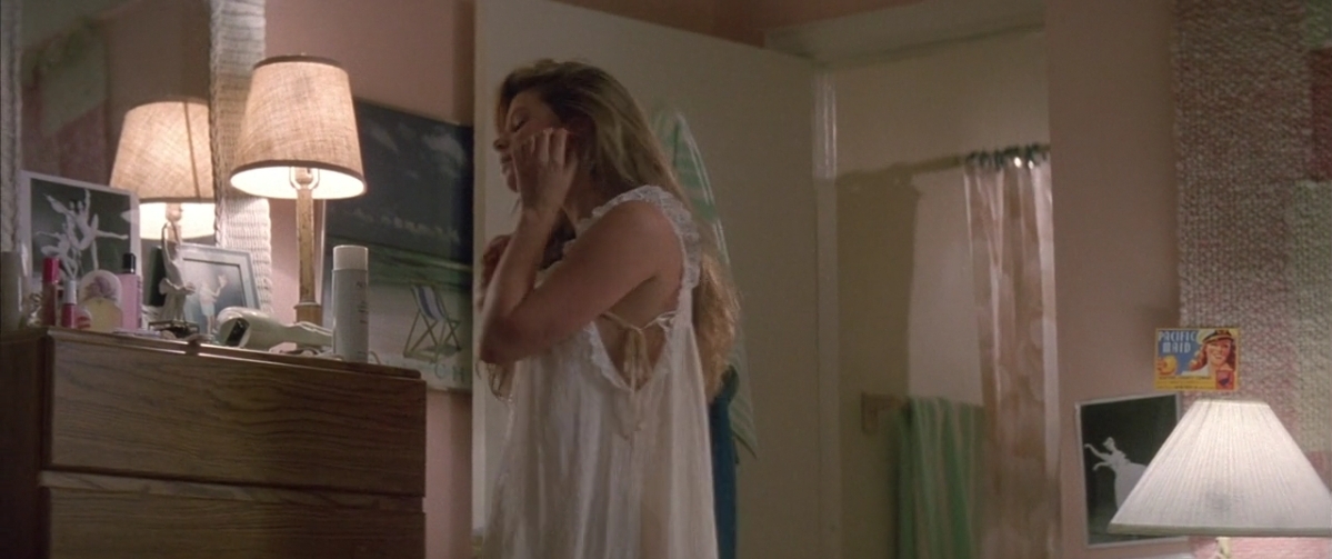 There’s an interesting bottle on the dresser of a coed: it’s Le Jardin, the “incurably romantic fragrance” by Max Factor launched in 1982. The British actress Jane Seymour was its testimonial.
