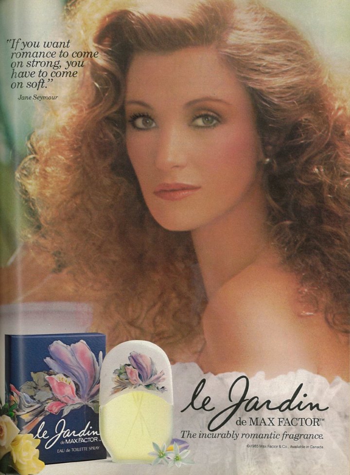 There’s an interesting bottle on the dresser of a coed: it’s Le Jardin, the “incurably romantic fragrance” by Max Factor launched in 1982. The British actress Jane Seymour was its testimonial.
