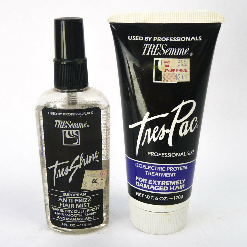 The vanity Sue Ellen (Christina Applegate) sits at every morning to get ready to work is full of beauty products. Besides a huge bottle of Rochas Femme perfume, there are two haircare products by Tresemmé with black packaging: the pump bottle on the right is Tres Spray, while the tube on the left is probably gel.