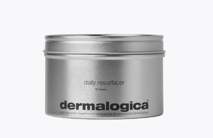 Thanks to a different angle we can see other two Dermalogica products – the Solar Defense Booster SPF50 in the small bottle with grey cap, and the Daily Resurfacer exfoliating pouches in the metal jar.