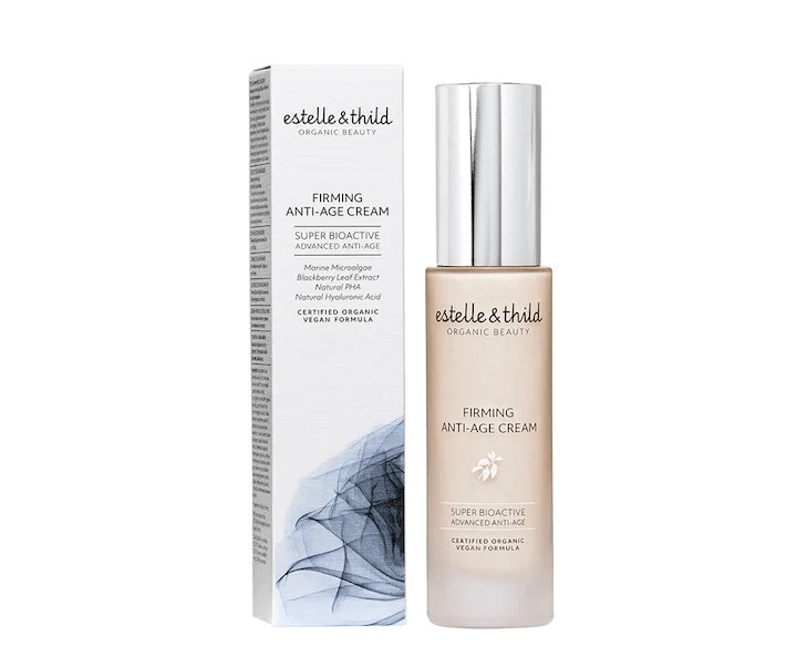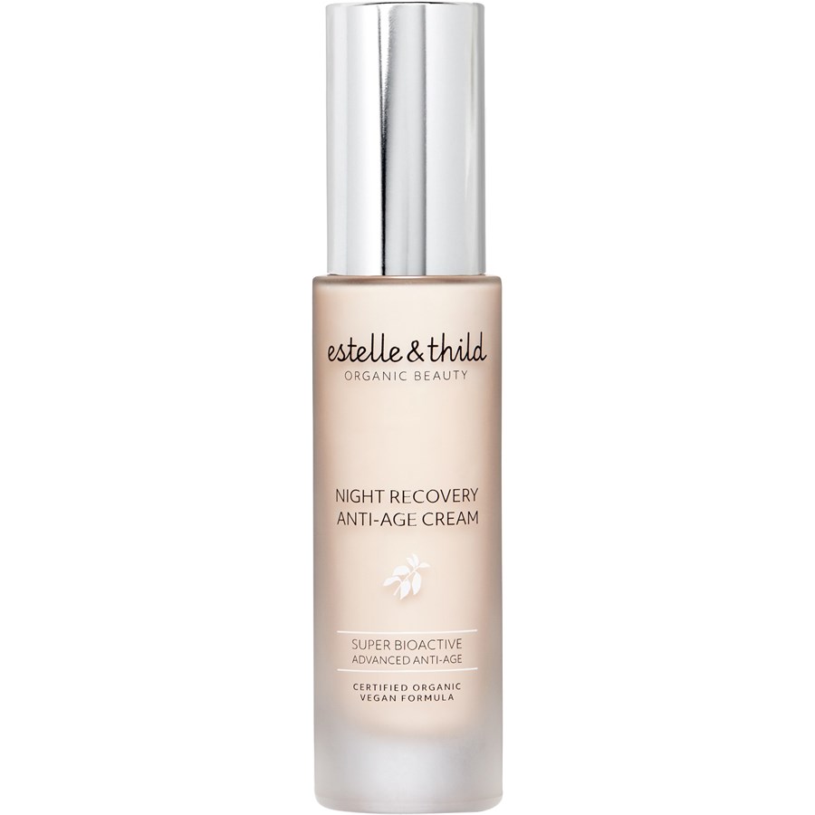 The tall bottles with silver caps are other two products by Estelle & Thild. The first from the left is the firming anti-age cream, the second contains the night recovery anti-age cream.
