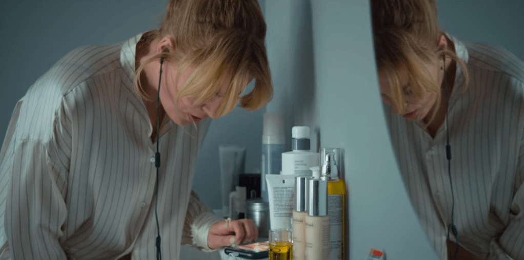 While Tanya is busy with a tarot reader, her assistant Portia (Haley Lu Richardson) is asked to leave and go to the bathroom. This is a rare occasion in which we can take a look at the products that the most desperate character of the show uses.