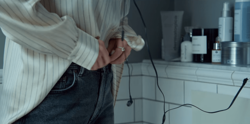 Ethan and Harper’s hotel bathroom seems to be the place where meaningful conversations between husband and wife happen, but also the place where dramatic epiphanies happen (in this case Harper suspects Ethan has cheated on her).