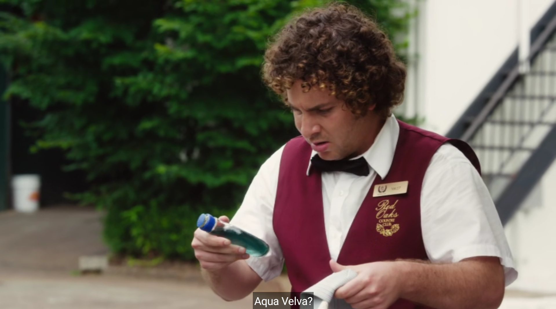 There has been a bag swap at the Red Oaks Club: Wheeler (Oliver Cooper) realises what has happened when he finds a bottle of Williams Aqua Velva after-shave lotion in the bag which turns out to be Herb’s.