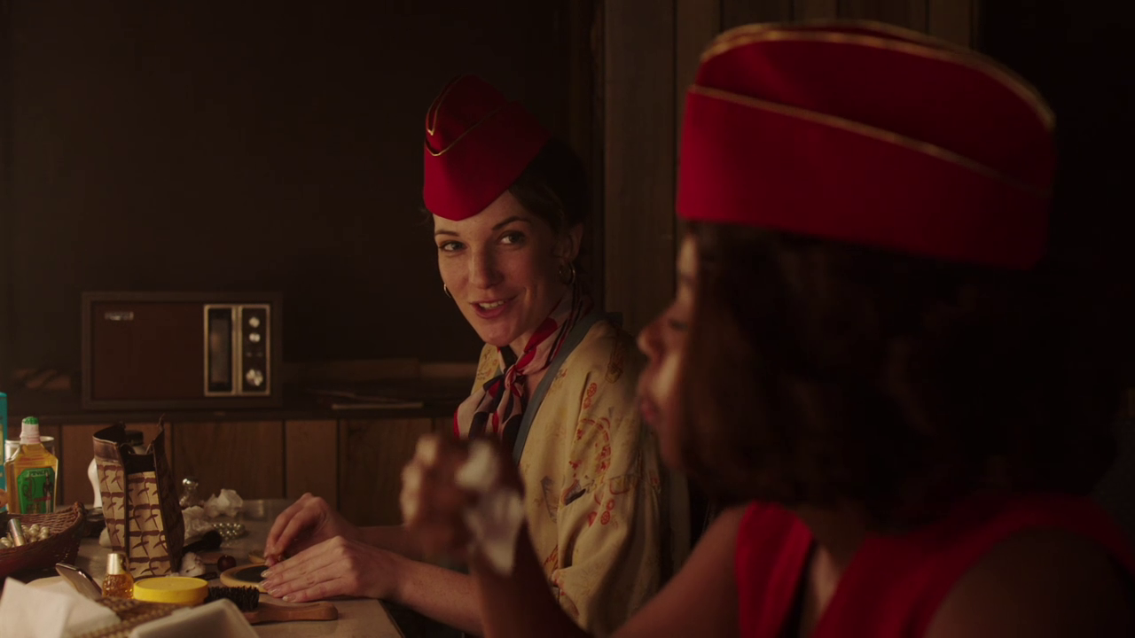 Harper (Audrey Plaza) and her husband Ethan have lots of toiletries in their marble hotel bathroom in Taormina.