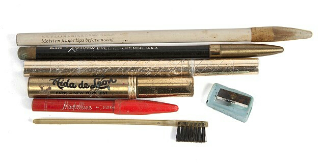 The auction will include some of the make-up items she used, among which Revlon black and white eye pencils, a Maybelline eyebrow pencil. The Aida de Leon gold tube was probably a mascara. Unfortunately I haven’t been able to find any information about this brand: it would have been interesting to know more about it. I think it was a brand of professional make-up for theatre and cinema.