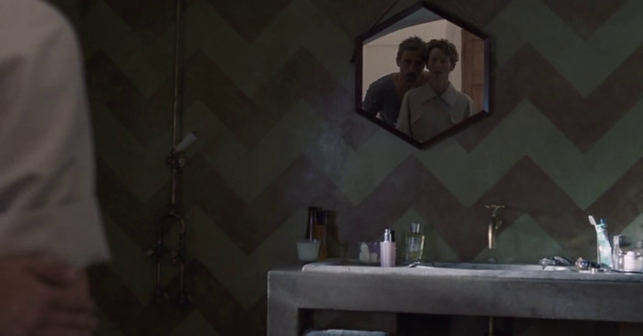 Marianne Lane (Tilda Swinton) is putting her make-up on just before hitting the stage. Her frosted lipstick is by MAC.