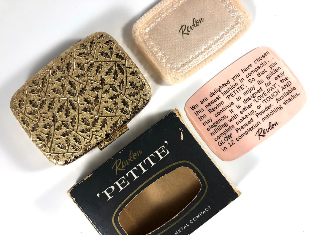 This compact was refillable with either Love-Pat complete make-up (it combined pressed powder and foundation) or Touch and Go pressed powder.