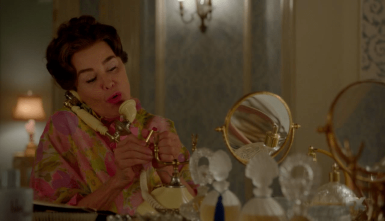 Backstage at the Oscars 1963, Olivia de Havilland (Catherine Zeta-Jones) retouches Bette Davis’ make-up. The lipstick she’s applying is by Bésame Cosmetics.