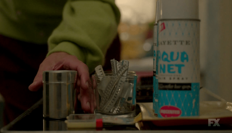 Selena Quintanilla (Christian Serratos) is getting ready for the Tejano Music Awards. On her dressing table there are a can of Aquanet hairspray and some red MAC lipsticks.