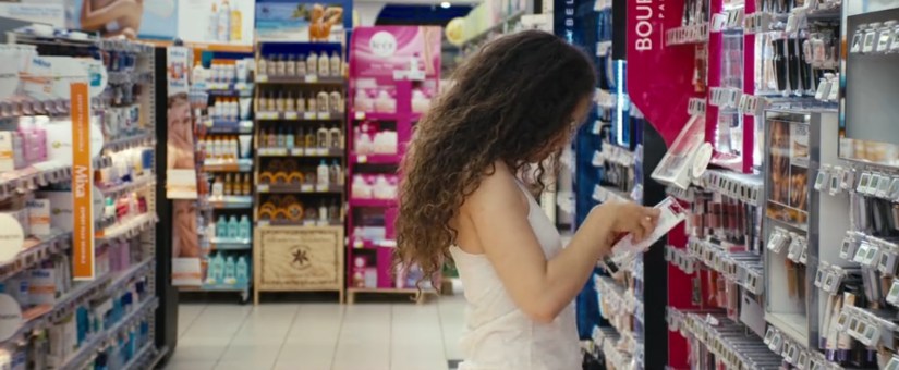 While at the supermarket with Djigui, Dounia (Oulaya Amamra) takes a lipstick out of a blister pack and puts it on. It’s not a product usually available at supermarkets, though: the red metallic case and the pink dots on it tell us it’s a BeneFit lip balm.
