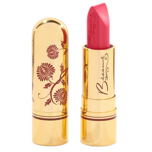 The lipstick she wears is Debutante sheer lip colour by Bèsame Cosmetics.