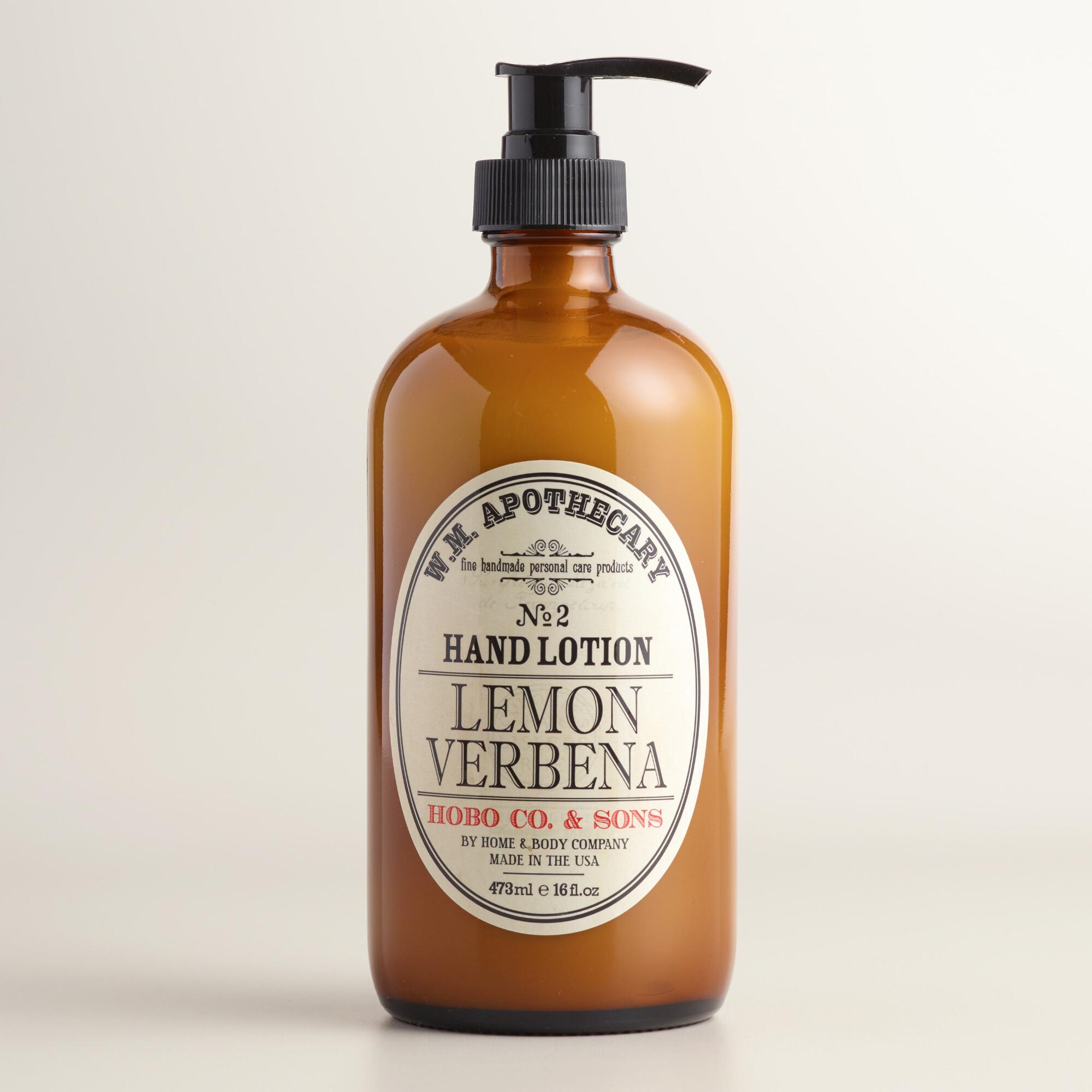 On the far right there’s a pump bottle of lemon & verbena hand lotion by W. M. Apothecary.