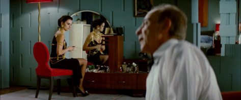 Perfumes and beauty products follow her in many scenes, as if they were heavy trappings of a fake identity. The triangle-shaped bottle of Lancôme Trésor body lotion makes its appearance for the third time, so now I guess it’s safe to say that this is her signature scent. It’s an unusual choice, because I would see Lena wearing something more peculiar, with more personality, so I guess this is another way to force her into a role she doesn’t feel comfortable with.