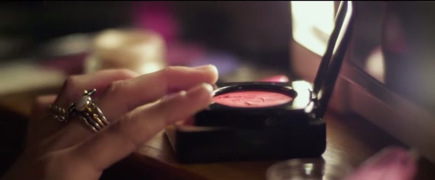 The film is not out yet, but there are a couple of interesting make-up moments in the trailer. In the first, the protagonist (Aubrey Peeples) starts experimenting with hot pink on her face, using a Chanel cream blush.