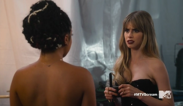 There is a hilarious conversation in this episode: it comes at a tragic moment (one of the protagonists has been killed) but Brooke Maddox (Carlson Young), the spoiled brat of the bunch, is able to relieve it. She calls Emma (Willa Fitzgerald) asking to help her choose “funeral nail polish”.