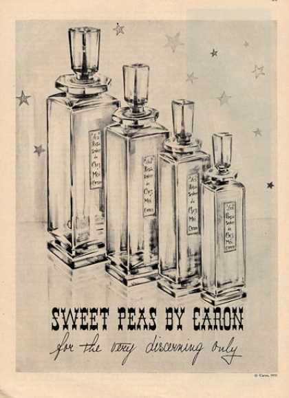 Several Caron bottles can be seen in the beauty department. Two types of bottles are displayed: one is made all of glass, with tall rectangular stopper; the other is made of dotted glass with gold fluted stopper. Unfortunately, it’s impossible to tell what scents they contain. On the contrary, we know the black bottle in the box is Nuit de Noël, a floral fragrance created by Ernest Daltroff and launched in 1922.
