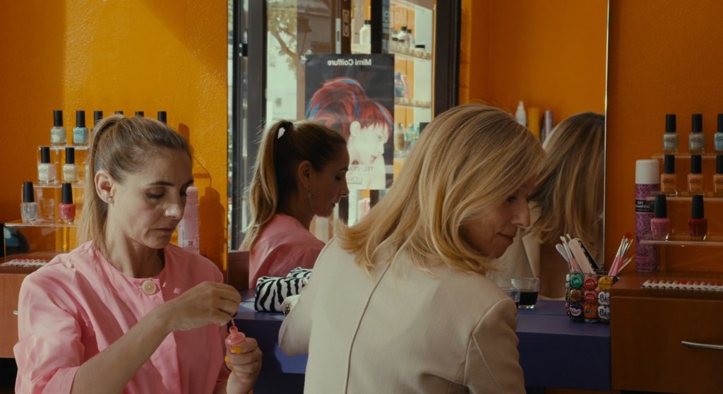 Mina (Clotilde Courau) is Anne’s sister. She’s a nail artist, too: the scene of this conversation between them takes place in her salon.
